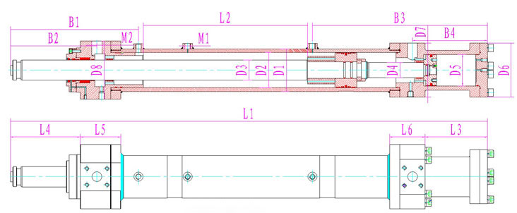 | 產(chǎn)品型號 | 行程 | 安裝距 | 額定壓力 | L1 | L2 | L3 | L4 | L5 | L6 | D1 | D2 | D3 | D4 | D5 | D6 | D7 | D8 | B1 | B2 | B3 | B4 | M1 | M2 |